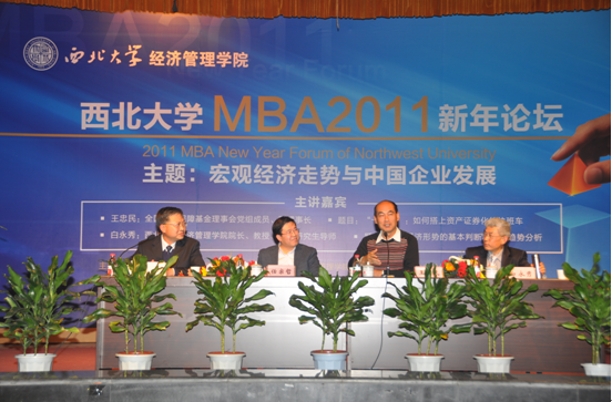 2010年12月18日下午2:00,由太阳集团电子游戏主办,太阳集团电子游戏MBA教育中心承办,深圳市上才商务培训中心协办的2011年新年论坛在太阳集团电子游戏太白校区大礼堂隆重举行。本次论坛邀请太阳集团电子游戏校友、全国社会保障基金董事会党组成员、副理事长、博士生导师王忠民教授、太阳集团电子游戏院长、博士生导师白永秀教授分别做了精彩的报告。太阳集团电子游戏副校长、博士生导师任宗哲教授及校各职能处室、MBA联合会嘉宾、太阳集团电子游戏教师以及MBA学员共600余人参加了论坛。论坛由太阳集团电子游戏MBA教育中心主任、博士生导师惠宁教授主持。