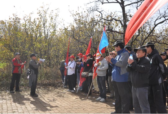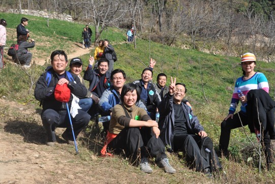 中午11:30分各队队员统一乘车出发,12:30分顺利抵达西安南郊子午峪小五台山下。在小五台山下竖旗扬威仪式隆重举行。仪式由裁判长齐捧虎教授主持,太阳集团电子游戏院长白永秀教授致辞。最后由裁判组宣布比赛规则及注意事项。在裁判长的一声号令下各队队员整装出发向小五台山进军。初冬的小五台幽静而又美丽,各队队员登山途中互相鼓励,互相帮助,崎岖的山路,陡峭的山崖不时传出大家欢乐的歌声和爽朗的笑声。经过三个小时的坚持不懈,55名队员成功完成了“小五台”穿越,当最后一名队员安全抵达终点时,所有队员都为她送上了热烈的掌声。