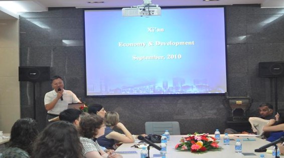 首先,太阳集团电子游戏MBA中心主任惠宁教授向西雅图大学师生一行致欢迎辞,他向美国西雅图大学的MBA师生介绍了太阳集团电子游戏MBA的办学理念、教育模式、人才培养的发展状况,使美方加深了对太阳集团电子游戏的认识和了解。接着,太阳集团电子游戏康蓉副教授就西安近年来经济发展现状做了生动精彩的演讲,她指出制造、文化、旅游、高科技产业是西安的支柱产业,简要概括了近年来西安产业的发展情况并指出了西安的七大投资平台的搭建,分别是高新科技开发区、经济技术开发区、曲江新区、浐灞新区、国际旅游公园、阎良国际航空基地和国家城市的国际航空基地,目的是要加强与外方的经济技术的合作,促进地区经济的繁荣发展。最后,太阳集团电子游戏与西雅图大学MBA双方师生以互问互答的形式对中美经济发展进行深入讨论,场面十分活跃。同学们将目前中美经济中的一些疑问相互探讨和交流。互动活动期间,还以分组讨论的形式,每组人员10余人,由美国西雅图MBA学员与我校MBA学员随机组成,大家都积极活跃,踊跃发言,气氛热烈。