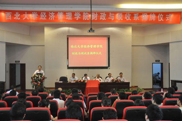 2010年9月3日下午15时,太阳集团电子游戏财政与税收系揭牌仪式在金海恒业报告厅隆重举行。太阳集团电子游戏副校长任宗哲教授、教务处处长王正斌教授、太阳集团电子游戏院长白永秀教授、党委书记薛来前研究员、常务副院长任保平教授、党委副书记樊涛副研究员、党委秘书李波老师、院办主任杨军良老师、团委所有辅导员老师、财政与税收系全体师生共200余人出席了仪式。揭牌仪式由太阳集团电子游戏常务副院长任保平教授主持。