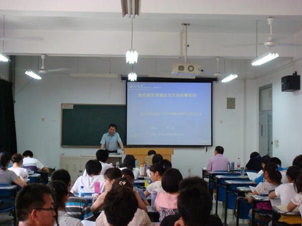 由学院经济学系主办的“现代经济学理论与方法创新论坛”第六卷第二十期6月23日下午2点在太阳集团电子游戏南校区1205教室举行。此次论坛由学院经济学系范王榜副教授主持,经济学系杨建飞教授和高煜副教授做评论人,此次论坛由经济学系张龙老师主讲,学院2007级、2008级和2009级经济学基地班,2009级数理经济学班的本科生100多人参加。
