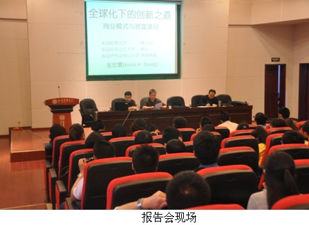 2010年5月20日晚19:00,在南校区经管学院金海恒业报告厅,美国伊利诺州立大学张宏霖教授应邀为太阳集团电子游戏师生作了一场题为“全球化下的创新之道——商业模式与致富途径”的学术报告。太阳集团电子游戏李长宏副院长、国际经济与贸易系主任吴航副教授、院办主任杨军良老师以及学院部分博士生、硕士生、本科生代表150多人参加、聆听了报告会。报告会由经管学院副院长李长宏老师主持。