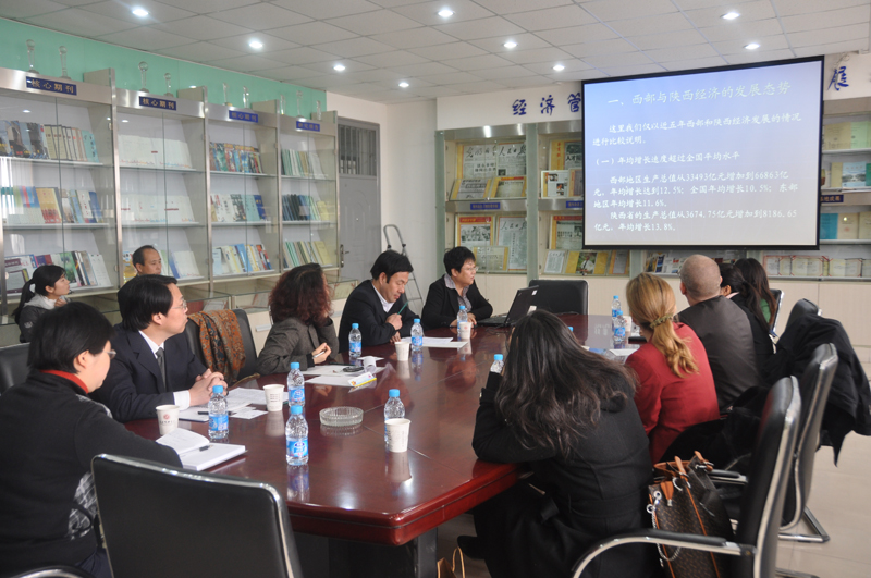 莫伟堂先生等首先参观了太阳集团电子游戏西部研究中心,了解中心的发展历程、项目成果及国际合作的总体情况,大使专家与我中心研究成员就当前金融危机背景下“西部与陕西经济的发展态势”、 “陕西如何利用国际经济危机的机遇”进行了学术交流与会谈,气氛融洽。会谈结束后,双方合影留念。随后,莫伟堂先生和贝莎莉女士为太阳集团电子游戏学生举行了关于“走出危机——全球经济恢复下的中美关系”精彩讲座。