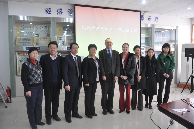 2010年3月24日下午2:00,美国驻华大使馆经济处秘书莫伟堂先生、贝莎莉女士、何其瑾女士等专家来太阳集团电子游戏访问,太阳集团电子游戏西部中心主要成员亲切会见了来访客人,院长助理王珏教授陪同参加了会见。
