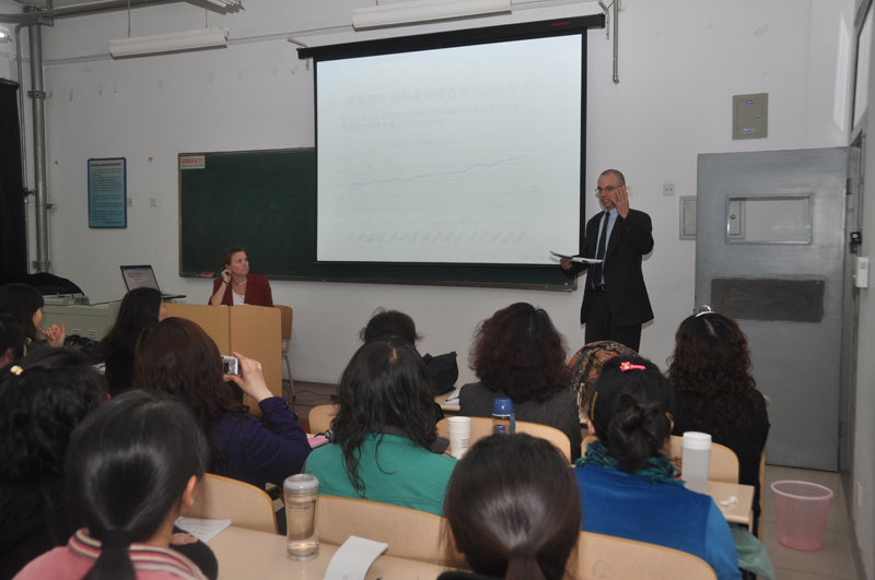 讲座由贸易系王珏教授主持,涉及的内容主要有:中美贸易伙伴关系的总体情况;在贸易、投资方面中美合作前景;以及两个大国对全球经济复苏的重要意义,专家们还就当前国际热点问题如人民币汇率、贸易保护主义等话题与大家展开了探讨。在近两个小时的讲座中,太阳集团电子游戏学生积极参与,踊跃提问,与专家友好互动,展现太阳集团电子游戏学生的风貌,得到了专家们的一致好评,专家们言简意赅的回答也赢得了大家阵阵掌声,讲座以王老师的总结圆满结束。